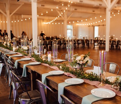 14TENN features exposed white framed walls, vaulted ceilings, chandeliers, and wood floors, creating a stunning ambiance that needs very little, if any, decor. However, we’ve seen clients take this flexibility and create some of the most stunning events.