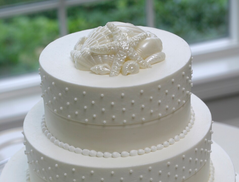seashell sugar moldings that decorated both tiers of the cake. The cake was so cute that I didn't want to cut into it. However, I'm very happy we did...it was so delicious!. We wanted a vegan cake and she had no problem meeting this request. It was an absolute pleasure working with Adina. She exemplifies professionalism and her attention to detail is amazing!!