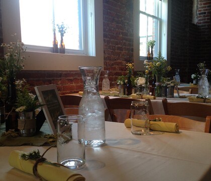 Beside Bardenay, just next to the restaurant, is the property's private event venue. This space carries the industrial design of the main building with a mix of exposed brick, wooden beams, and metal touches. This setting can accommodate wedding ceremonies for 90 guests and buffet dinners of up to 110. It also features patio access, offering an indoor-outdoor location for your big day. For a more intimate atmosphere, the Boiler Room is nestled behind the main dining area in the restaurant. This 500 square foot space is ideal for smaller gatherings of up to 24 people. It features the same charming ambiance that is found throughout the entire distillery.