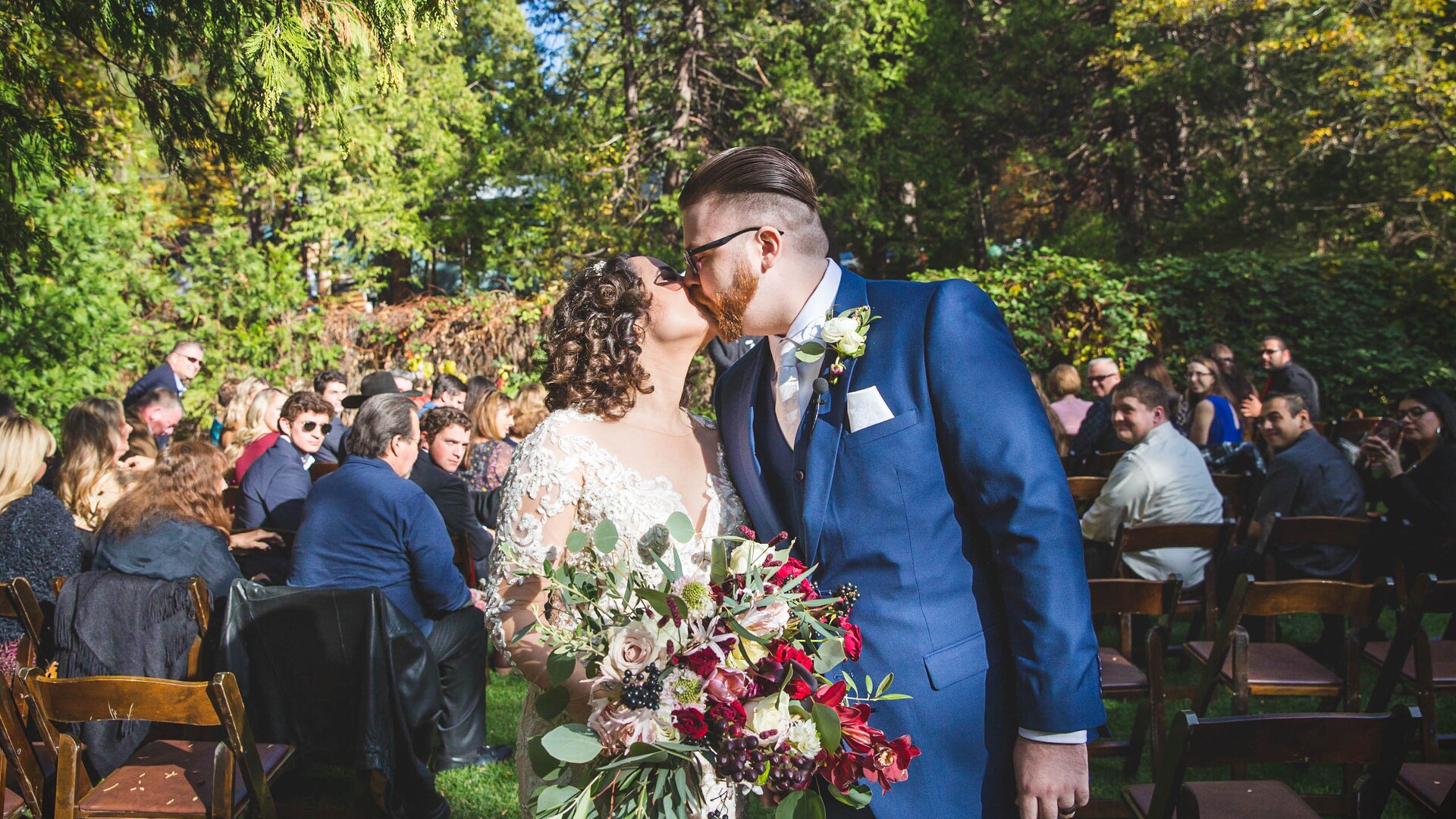 Calaveras County's Premiere Wedding & Event Venue. We offer both indoor and outdoor venue spaces for your event, tailored to the seasons and your requirements. You will have exclusive use of numerous areas of our venue, including our lower meadow (Oak trees, sweet peas, and a foot bridge), the rose garden, the string-lit back patio (plenty of room for dancing), and the Gathering Room (with a large river-rock fire place). Whether you are planning a lavish celebration of 150 or an intimate gathering for 30, The Black Bear Inn is ideally suited for your wedding celebration. For outdoor events, ceremonies are typically held in the lower meadow, followed by cocktail hour in the rose garden, and finally the guests are escorted to the backyard/back patio for the reception.
