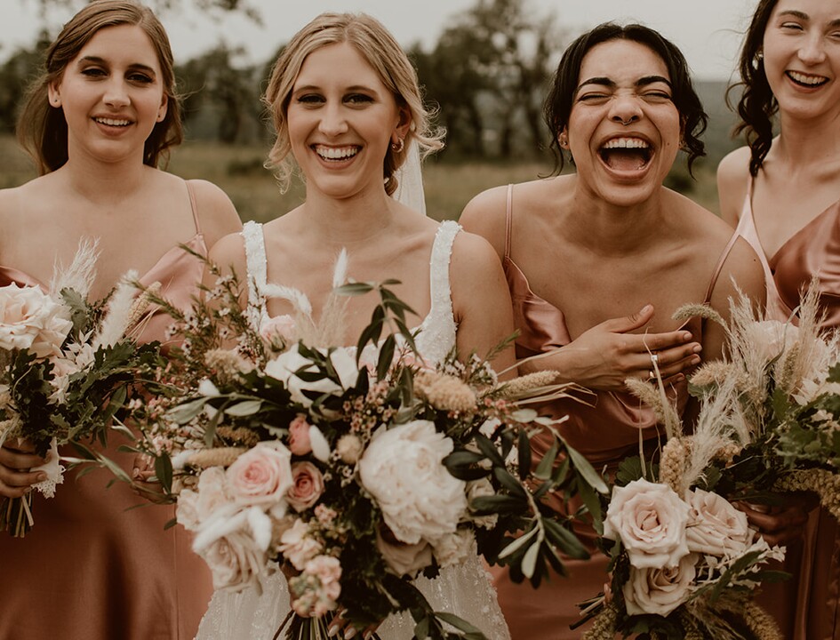 work with! None of my bridesmaids had given much thought to a specific look until the day of and they did a great job guiding us. Everyone looked beautiful and cohesive. Sara’s makeup made me look like my best version of myself (natural but elevated). The only hiccup we had was from the humidity, which meant my lip stain never fully dried and got all over the groom. In the end, it made for quite a few laughs and some cute photos. The rest of my makeup lasted all day and all night in spite of the heat and looked beautiful in our photos. I would definitely hire Bonita Brides again! Thank you guys!