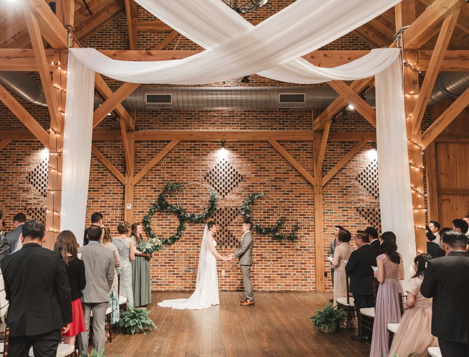 edding back in May. We worked with Heather, who was very organized and helped our day run smoothly. The venue itself is beautiful with twinkle lights and the high ceilings. It was perfect since our guests didn't have to travel from the ceremony site to the reception since it was all in one place. It was one of the few rustic, climate-controlled venues in the area that could accommodate our 200+ guests. We had the ceremony upstairs, went downstairs for the cocktail hour, and came back up to see the room transformed for the reception. We ordered our desserts from ZIG's (the bakery downstairs), which was very convenient. And, since they do in-house catering, we didn't have to worry about getting an outside vendor. The food was delicious and the atmosphere was magical.