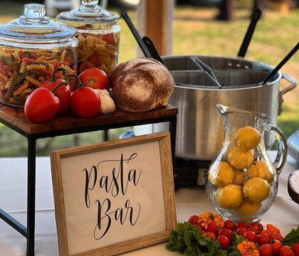 When working with By Hand Catering, you can discuss your needs, budget, and diet requirements with the team. From sophisticated plated dinners to buffets, they can arrange your serving options to match your vision. Some of the delicious items you can order include a pasta bar, a pizza bar, a charcuterie board, salad, sliders, and more. In addition, to accompany your dishes, this business offers a charming mobile bar trailer where guests can order refreshing drinks.