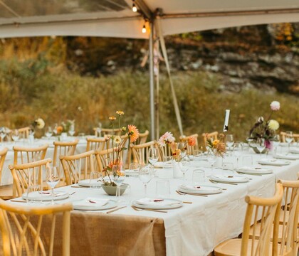 You and your partner can exchange wedding vows in front of up to 160 of your nearest and dearest in our secluded and enchanting open space. After the ceremony, you will make your way down a winding natural trail towards The Meadow. This magnificent area can seat up to 240 guests, and is perfect for a warm-weather event, during the milder seasons, spring, summer, and autumn. Here, underneath the cover of a large, 2700 square foot canopy, you can enjoy a delicious feast created by Chef Efren Hernandez, who was nominated for a James Beard award. At Camptown, there are 26 cozy log cabins and 24 hotel rooms to choose from for your guests. These are ideal for couples who want to stay for a few days to relax and unwind before or after the celebrations. You, your future spouse, and guests will have the opportunity to enjoy activities such as swimming or hiking, or classes like candle-making and archery. You may also enjoy art and music and delight in delicious food and drink at our restaurant or nearby establishments. Our saltwater pool is available May through October and is a haven for summer days with waterbed cabanas, sun loungers, and our seasonal Pool Bar, Bar Piscina.