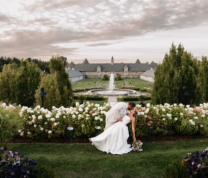 Castle Farms is an enchanting wedding venue in Charlevoix, MI. This historic venue invites couples to celebrate their love, surrounded by beautiful architecture and nature. Romantic courtyard chapels, magnificent formal gardens, soaring towers, and stone archways all combine to create a unique and elegant castle wedding tucked away in beautiful Northern Michigan.