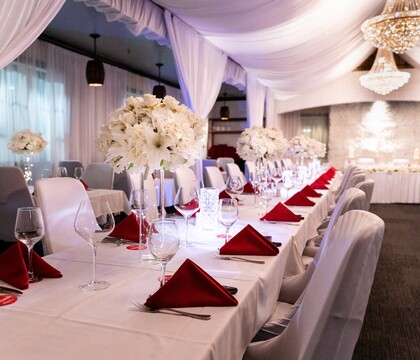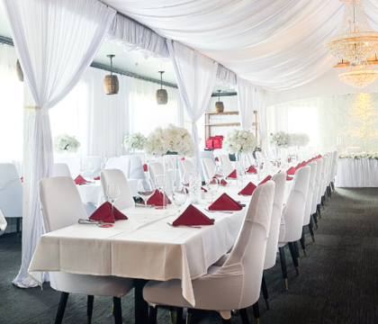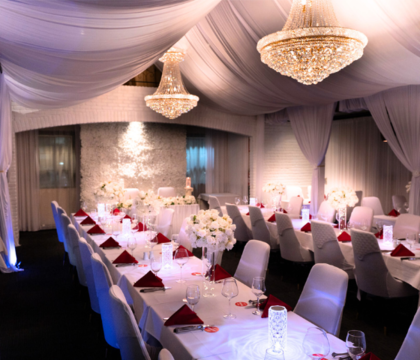 Want to hold your ceremony with us too? We offer a dedicated ceremony setup with aisle decor and seating, plus a seamless room transition into your reception — all taken care of by our experienced team.