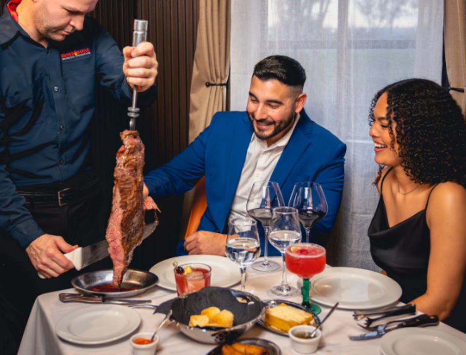 Our all-inclusive reception packages cover it all: beautifully set tables, full-service staff, family-style dessert, unlimited non-alcoholic drinks, and our signature rodízio experience with over 15 flame-grilled meats like filet mignon, leg of lamb, and picanha.
