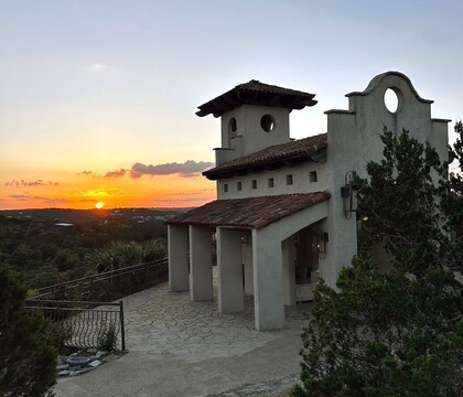 Chapel Dulcinea is a romantic open-air wedding chapel that sits daringly on the edge of an ancient walking trail overlooking the Texas hill country, providing exquisite and picturesque views. When you step inside, you will feel like you have been swept away to the Italian countryside. The Chapel boasts tiled roofing with large arches, allowing plenty of natural light and fresh air to make its way through. Enjoy a breathtaking ceremony surrounded by up to 60 of your nearest and dearest in the rolling Texas hills.