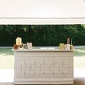-Paneled photo wall and wicker lounge furniture with flexible layouts with the bar trailer