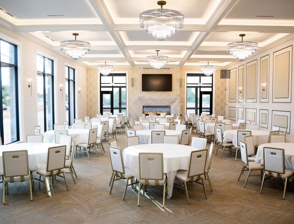 The Apex Room has a capacity of 100 guests and combined with our four seasons room up to 120. Both spaces can be reserved individually for more intimate gatherings! Our restaurant’s private dining area is an elevated banquet center that exudes sophistication; offering large windows, overhead chandeliers, and a double sided fireplace.