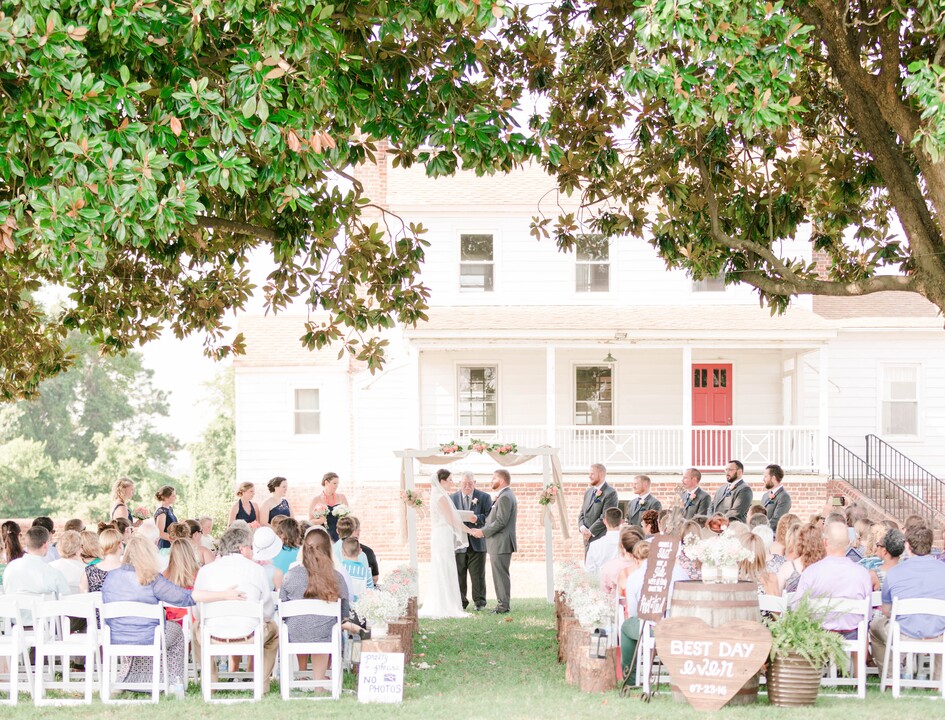 Nestled amidst farmlands and the scenic Pamunkey River, Cousiac Manor is a countryside wedding venue in Lanexa, VA, between Richmond and Williamsburg. This traditional estate comprises rolling fields and farmland, scenic river views, a traditional manor house dating back to 1746, and a barn-style wedding venue. Here, couples can curate their big day according to their unique wishes and tastes, from rustic and relaxed outdoor receptions to intimate and elegant celebrations.