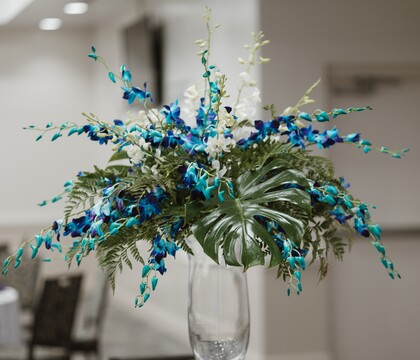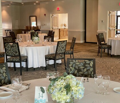 Our elegant ballroom accommodates up to 200 guests and includes 72" round tables, banquet chairs, mirrors, votives, white linens, napkins, and silverware. Wedding packages also include setup, cleanup, servers, and bartenders, ensuring a seamless experience from start to finish.
