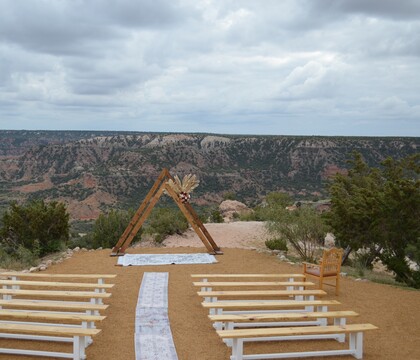 This is the land where the Buffalo roamed, and it is also Southern and Quahada Comanche, Kiowa, Cheyenne, and Arapaho territory. Constructed so that the natural beauty around it is preserved and enjoyed, Tres Vientos boasts a gorgeous natural walkway with steel railings. This brings you and your guests as close to the edge as possible in a safe and easily accessible way. Doves Rest Cabins is an ideal venue for a small or intimate wedding celebration with your most loved ones. A 1440-square-foot canopied patio offers an outdoor space for ceremonies and receptions. This area can host several guests. For couples and guests who would like to spend a night or two at Doves Rest Cabins, there are twenty luxury cabin rentals that offer a tranquil stay. Whether before or after the festivities, you, along with family and friends, can enjoy some more time together, relaxing and taking in everything this incredible location has to offer.