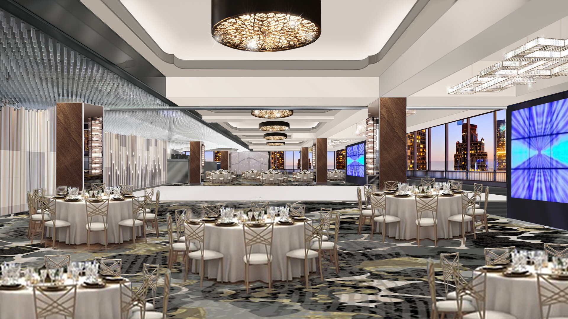 Elevate Lounge’s staff supports this stunning skyward event space with attentive service designed to make guests feel like they’re on cloud nine. The venue features a large dance floor for a night of lively celebrations and has cutting-edge lighting and sound equipment for your DJ to use. Hungry guests will love the expert catering options provided by fellow penthouse residents the Takami Sushi & Robata Restaurant. There is also an extensive bar service available including a magnum of Moet and Grey Goose.