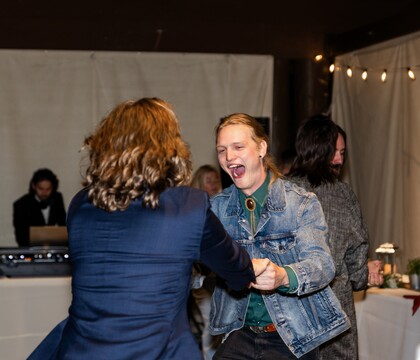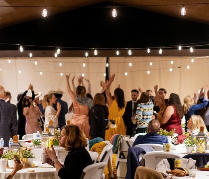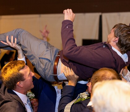 But, where we were both so thoroughly impressed, was how he got the party started after the last of the parent dances. Right off the bat, "Thank God I'm Country Boy" had the dancefloor packed and people moving tables to clear more space. From there the energy never fell flat, he livemixed transitions from one song to the next, even into songs that were requested on the fly. I'll never forget how my Dad seemed to get activated like a sleeper agent when he played "One Step Beyond". What really impressed me, in comparison to just about every other wedding DJ I've seen, was how attentive he was to the crowd mood. When the crowd had the energy he would keep it going, but there was always a breather when needed. The night had some amazing cresciendos, including me being crowdsurfed! We didn't want it to end even after three plus hours of dancing.
