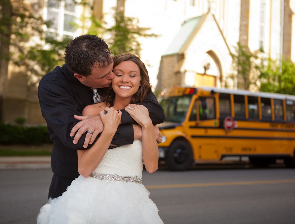 nd the windows were left open when the wedding party was being picked up. When the wedding party boarded the bus, the groomsmen had to get towels from the inside of the hotel to wipe all of the seats down. I think there was an issue with the bus as well, because there was hot air blowing for the duration of our ride to the venue. We asked the driver to turn the heat off, but he said that it wasn't on. The driver also took a wrong turn on the way to the venue. I understand mistakes happen, but this was on top of the wet seats and very hot bus. The "big yellow school bus" was something I specifically looked for, but I would not recommend to brides in the future.