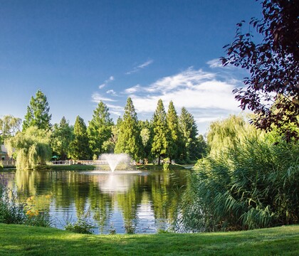 With room for up to 350 guests, Flowerfield offers an expansive setting for your long-awaited celebration. On the grounds, couples and their guests will find a lush, sprawling paradise filled with secluded spots and picturesque settings. From the organic vineyards to the stunning reflection ponds, this space offers a variety of backdrops for your celebration. Inside, the 7,600 square foot ballroom presents a luxurious setting for wedding occasions. Its bright, natural atmosphere can add a relaxing touch while maintaining an elegant feel throughout. With its mahogany floors, thoughtful design, and floor-to-ceiling windows, this ballroom exudes quality at every turn. The Atrium, a purpose-built ceremony space, aims to bring the outside indoors all year round. Filled with lush greenery, natural lighting, and a koi pond, it can be a peaceful and romantic setting for your special ceremony. In warmer months, the charming outside gazebo also presents a welcoming space for you and your partner to share your vows.