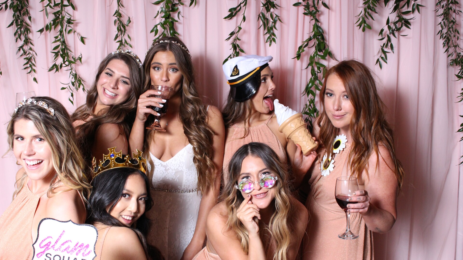 Foto Vibe Party offers squish-free photos (open-air booth) with plenty of room for your party crew. It’s fun for everyone. Add {unique, adorable} props with a {simple or custom} background and Foto Vibe is the life of the party, breaking the ice, connecting your guests and snapping countless smiles for precious keepsakes. We can fit 1- 20+ guests in a photo! (it's your entire wedding party or large group of friends!) We can customize graphics, backgrounds and props for your specific theme or colors. We are so much more than just a photo booth though. Custom props, unique signage and organic balloon decor and rentals.