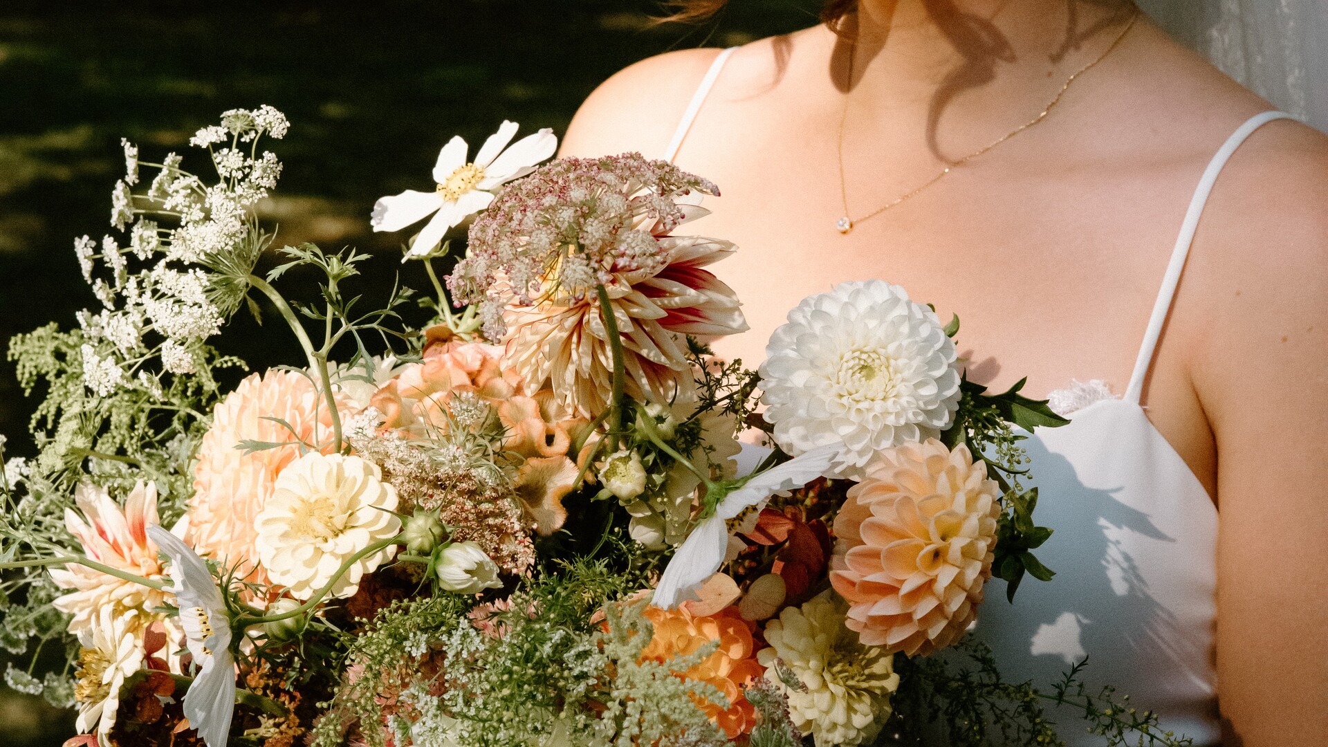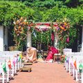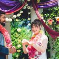 Tim and Liz did a great job bringing our vision to life. They provided table arrangements, a bridal bouquet, garlands, boutonnieres, hair clips, and a chuppah/mandap structure and florals. We were especially impressed with Grow Wild’s attention to detail. For example, they matched my bouquet to my floral wedding dress and were able to elegantly incorporate several significant fabrics from both my and my husband’s families into our chuppah/mandap.