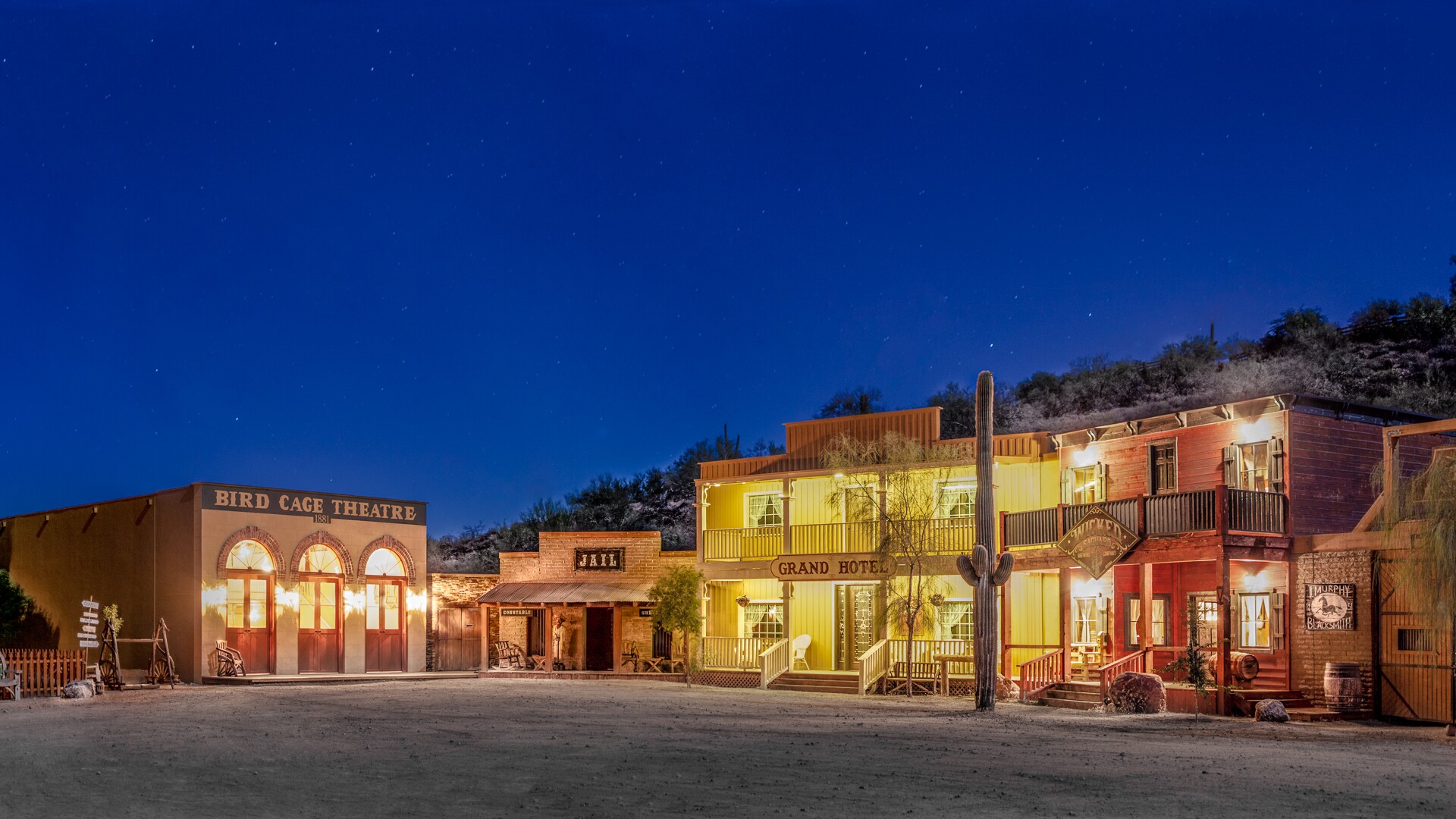 On your big day, you can exchange vows in The Little Stone Chapel. This chic space with room for 80 guests perfectly recreates an Old West church, crafted with Iron Mountain Slate and complete with a 19th-century church bell and restored pews. After your ceremony, pose for fun wedding photos around this desert oasis while your guests sip refreshments and mingle in the Wicked Saguaro Saloon. This authentic saloon-style bar boasts Western movie memorabilia. After cocktail hour, enjoy a fantastic wedding reception in the Birdcage Theater. This deluxe reception space is a replica of the original historic setting in Tombstone and features intimate seating arrangements and a stage perfect for your wedding entertainment. Alternatively, you can celebrate under the expansive Arizona sky in the center of town, creating your own unique ideas. At the end of the evening, you and your beloved can stay in the Jailhouse Guest House, a rustic two-bedroom casita with modern amenities. There’s ample parking available onsite for your guests, and the Gunsight Pass team will work with you to ensure you have everything you need for your beautiful celebration.