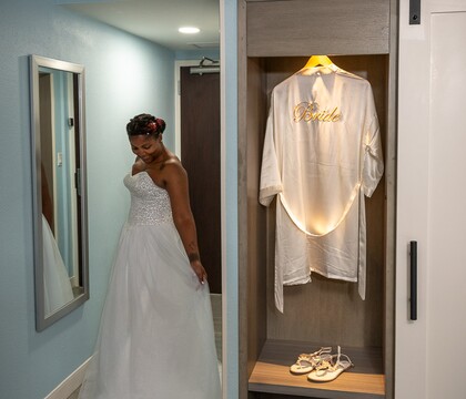 The Horizons Room with its patio and private beach access was ideal, especially with the SpaceX Crew Launch happening during our reception. Excellent backdrop for many of our pictures with the beach background in the late afternoon. All guests were able to view the night launch from the walkway.