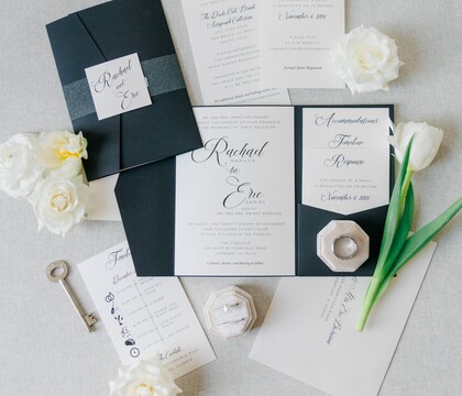 Not only can we totally customize your invitation, but we can coordinate so that all of your day-of ensemble will match the look you created to guarantee consistency.