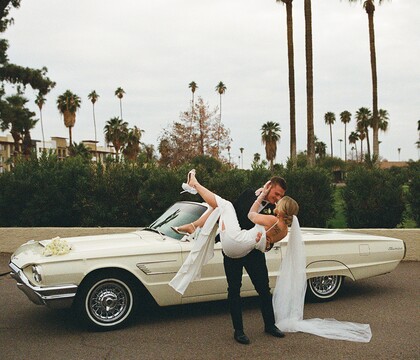 JenzBenzAz provides an unforgettable touch of classic elegance, perfect for grand exits or romantic photo sessions. Whether for your wedding or a unique and bold engagement shoot, JenzBenzAz brings vintage romance and classic luxury to you. Contact them today to discuss what car best suits your wedding vision. Due to the age and constraints that come with classic cars, there are distance limitations. They primarily work in Mesa, Gilbert, Apache Junction and selected areas within Scottsdale, Phoenix and Chandler.