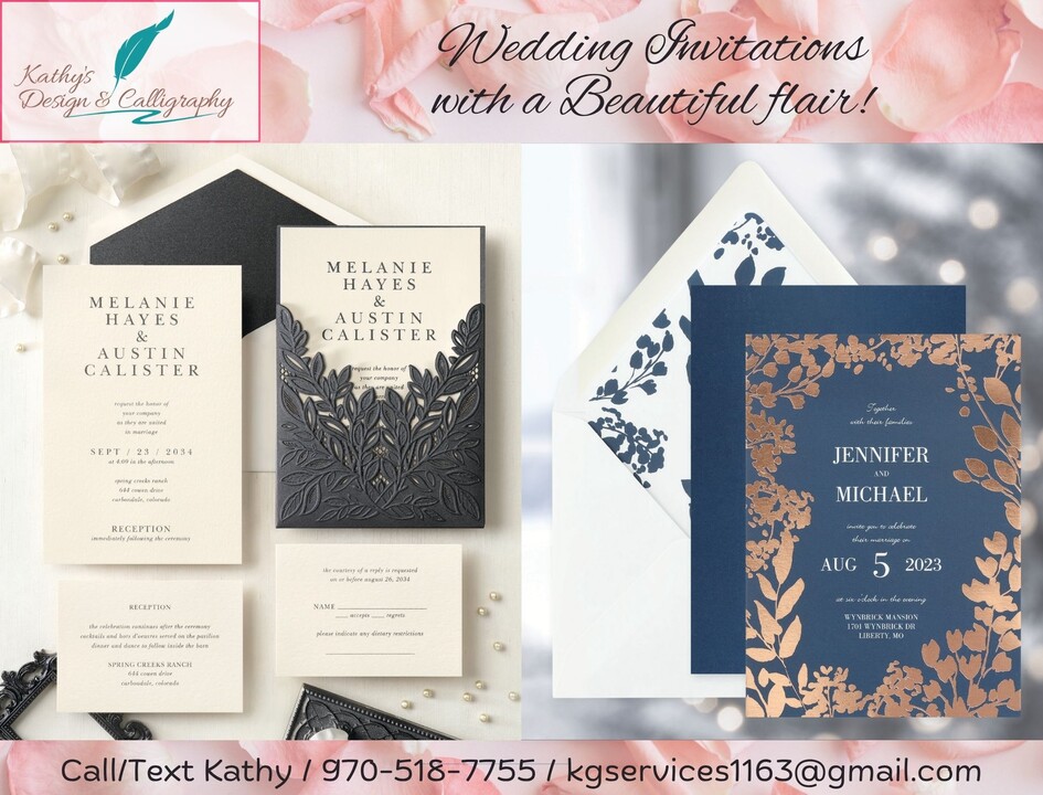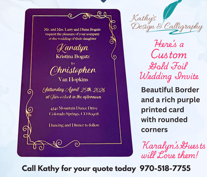 Kathy's Design & Calligraphy is a hand-lettering and calligraphy artist from Greeley, CO, who offers services for weddings.
