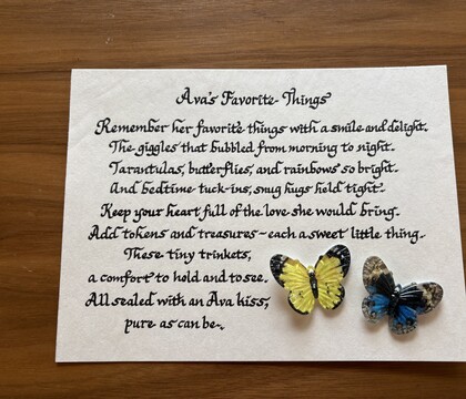 Hi there, Joy here, just wanted to leave you a message, about my latest Calligrapher, her name is Kathy, and I was so impressed by her professionalism, great ideas, and all the hel...