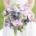 ted we just had ideas of how we wanted them to look. We wanted something wild looking with lots of muted greenery, and white &purple flowers. We found some images online of colors and styles we liked and Natalie took this information and created absolutely stunning arrangements. Natalie did all of our centerpieces, bouquets, corsages, cake flowers and ceremony floral hangings. Everything was gorgeous!!
