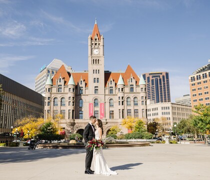 The historic Landmark Center embodies the prestige and elegance of the Italian Renaissance. Light pours in from the skylights above, illuminating the vast tiled atrium below. You may also choose from three beautifully restored courtrooms which perfectly accommodate a more intimate gathering. With an event staff working with couples for over 15 years, Landmark Center is a highly preferred choice for dream weddings. Rental prices include security, the setup, and clean up of Landmark Center's tables and chairs (for up to 320 guests).