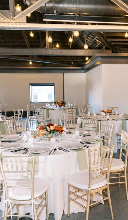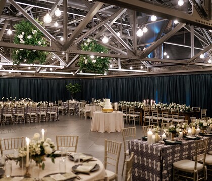 Limestone Hall can host from 100 to 400 guests, ideal for those hoping to host either an intimate gathering or a large-scale celebration. The outside of the venue features beautiful pillars and exceptional stonework that give the space a sophisticated feel. Inside, the event space has high vaulted ceilings and subtle industrial lighting. The color palette is also quite neutral, so you can truly make the space your own as it blends in seamlessly with the theme of your wedding.