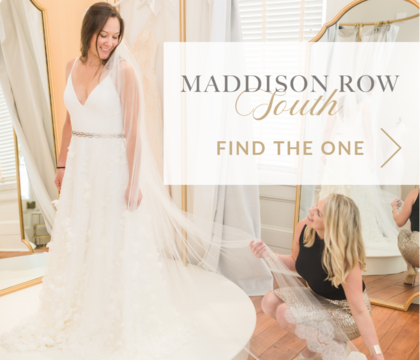 The gowns at Maddison Row South feature classic styles with modern twists, all made with high-quality materials and craftsmanship. From long gowns that sweep the floor to short, white cocktail dresses, the team offers dresses in a range of cuts and fabrics. Here you can find a gown to twirl the night away that showcases you. In addition to dresses, complete your wedding look from the boutique’s selection of belts, sashes, veils, and jewelry.