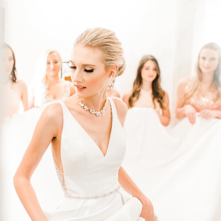 Makeup by Adrienn and Team offers natural makeup and airbrush makeup applications for your wedding day, as well as hair styling services. All makeup applications include custom faux eyelashes, brow shaping, detailed eyeshadow, blush, highlight, contour, and lip color. You can enjoy a trial ahead of your big day, and beauty services are also available for your wedding party, mothers of the couple, and other guests.