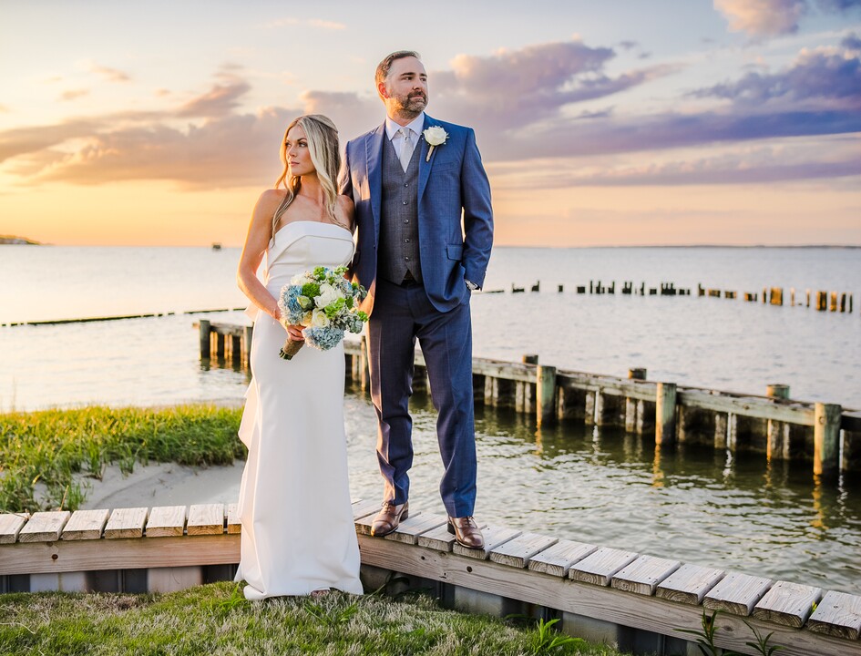 or couples to view his work. Immediately we knew we had to have him document our wedding because the photos were so spectacular! We contacted him soon after and were so happy to find out he was still available, I’m sure it helped that we booked him about 9 months in advance. Matt and his second photographer Cory, were absolutely amazing on the day of our wedding. They were both so relaxed and easygoing that it made us all very comfortable so we could act natural while they took our picture. Matt first took detailed photos of my dress, shoes, flowers, rings, etc. Then photos of my bridesmaids helping me get my wedding dress on and then several photos of me and my bridesmaids being silly. While Matt was taking photos of me and my bridesmaids, Cory was at the house down the street taking photos of my husband and his groomsmen getting ready. The guys then came over to over house and we took our first look photos. Unfortunately, it was raining so we were very limited in the pre-wedding photos we could take but Matt and Cory were still able to get some great shots in the house and on the covered-balcony. Luckily, there was a brief break in the rain and we were able to take some bridal party photos outside in the neighborhood! We then headed to the Roanoke Island Aquarium to take more pre-wedding photos before our ceremony with our families and our bridal party in front of the shark tank! Since it was still raining at 6:00 we weren’t able to have our picturesque ceremony on the pier outside the aquarium so we had our ceremony inside. Matt took spectacular photos of our entire wedding; the ceremony, the first dance, the cake cutting, the father-daughter dance, the mother-son dance, and so many more memorable moments. Our favorite photos that Matt took of us was during the reception, he noticed that the rain had let up so we went out onto the pier and took photos with the sun setting in the background to the right and to our left was a very large-dark storm cloud coming. The contrast of the sky and the sun setting made for the most spectacular photo ever! We are so pleased with the quality of work Matt produced for us. He was able to send us a link of all of our photos within two weeks and sent us a flash drive with three! Brides, my advice is book him as soon as possible, you will not be disappointed! I wish I could truly express how wonderful Matt is and how happy we are but I feel that words just aren’t enough, all I can say is thank you Matt for everything!