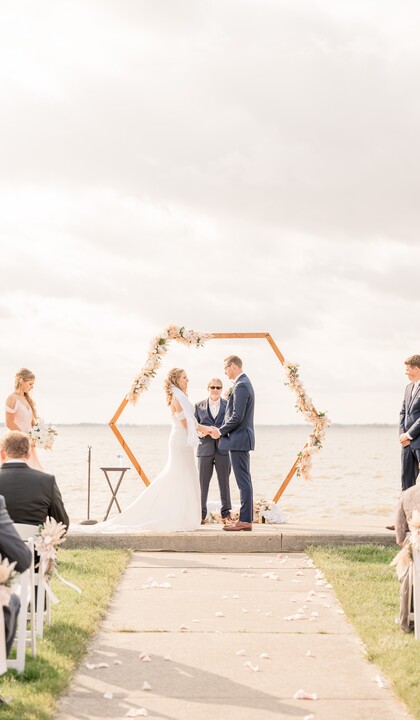 Boasting a selection of fabulous event spaces, Maumee Bay Lodge invites you and your beloved to choose the settings that best match your needs. Ceremonies often take place on the Brick Patio, overlooking the venue's fountain pond and the tranquil waters of Lake Erie. This outdoor ceremony location is available to rent with the Grand Ballroom, accommodating up to 300 guests. The ballroom is flooded with natural light, featuring large windows, an outdoor balcony area, and all of the necessary items to set up your dream event. Couples can also opt to host their ceremony on the North Lawn, a lush, grassy area located directly next to the lake. North Lawn rentals are available with receptions in the venue's White Tent. This indoor/outdoor option boasts a true lakeside feel with fabulous views that stretch as far as the eye can see. The White Tent welcomes receptions of up to 130 guests, with flexible setup options and a range of event items available to create your preferred layout. Private dressing rooms and overnight accommodations are available within the lodge, guaranteeing plenty of space for you and your guests to prepare for the occasion and recharge after a long day of festivities.