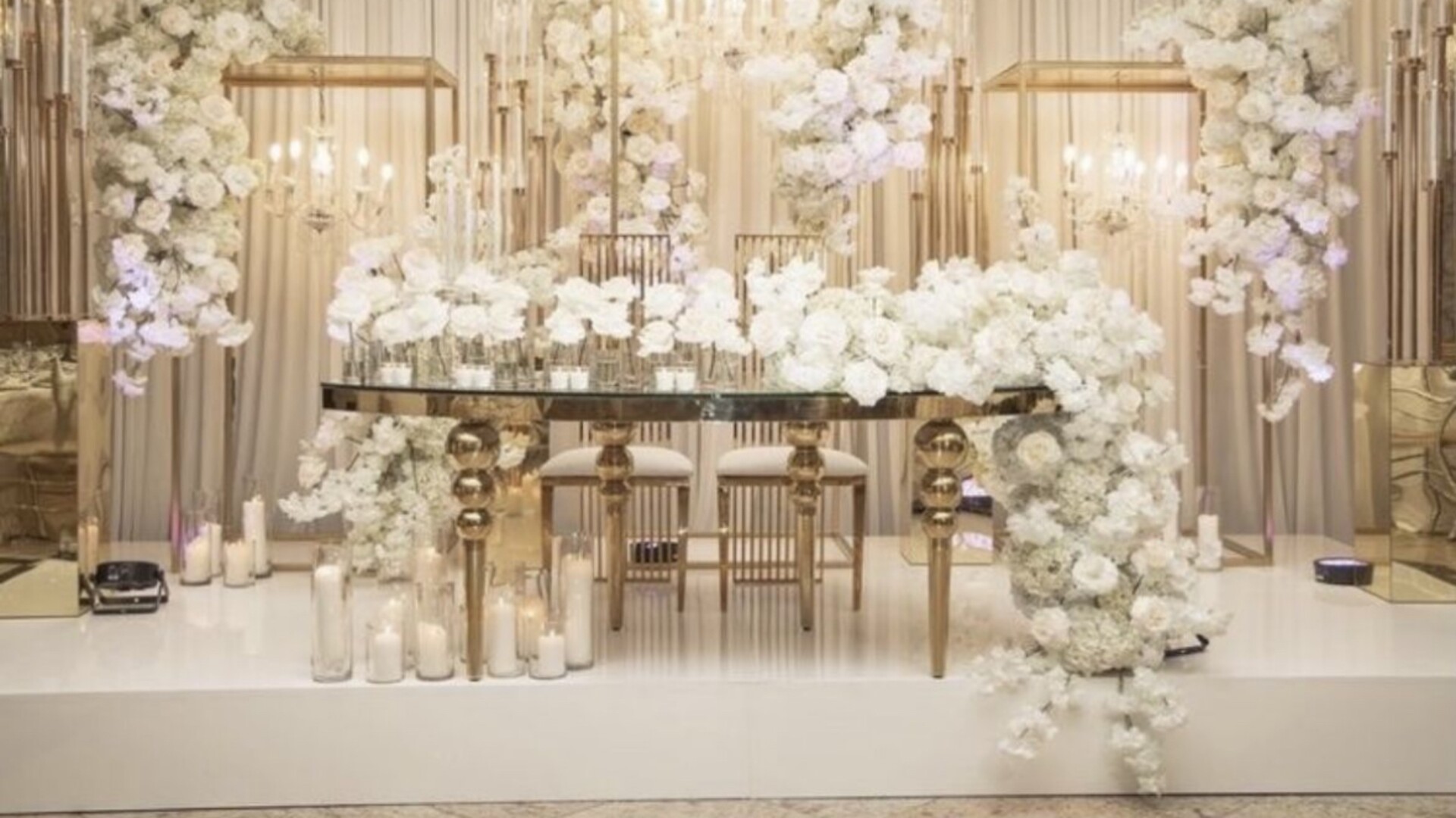 all the flower arrangements which set a very romantic mood, along with the centerpieces and the carpets.