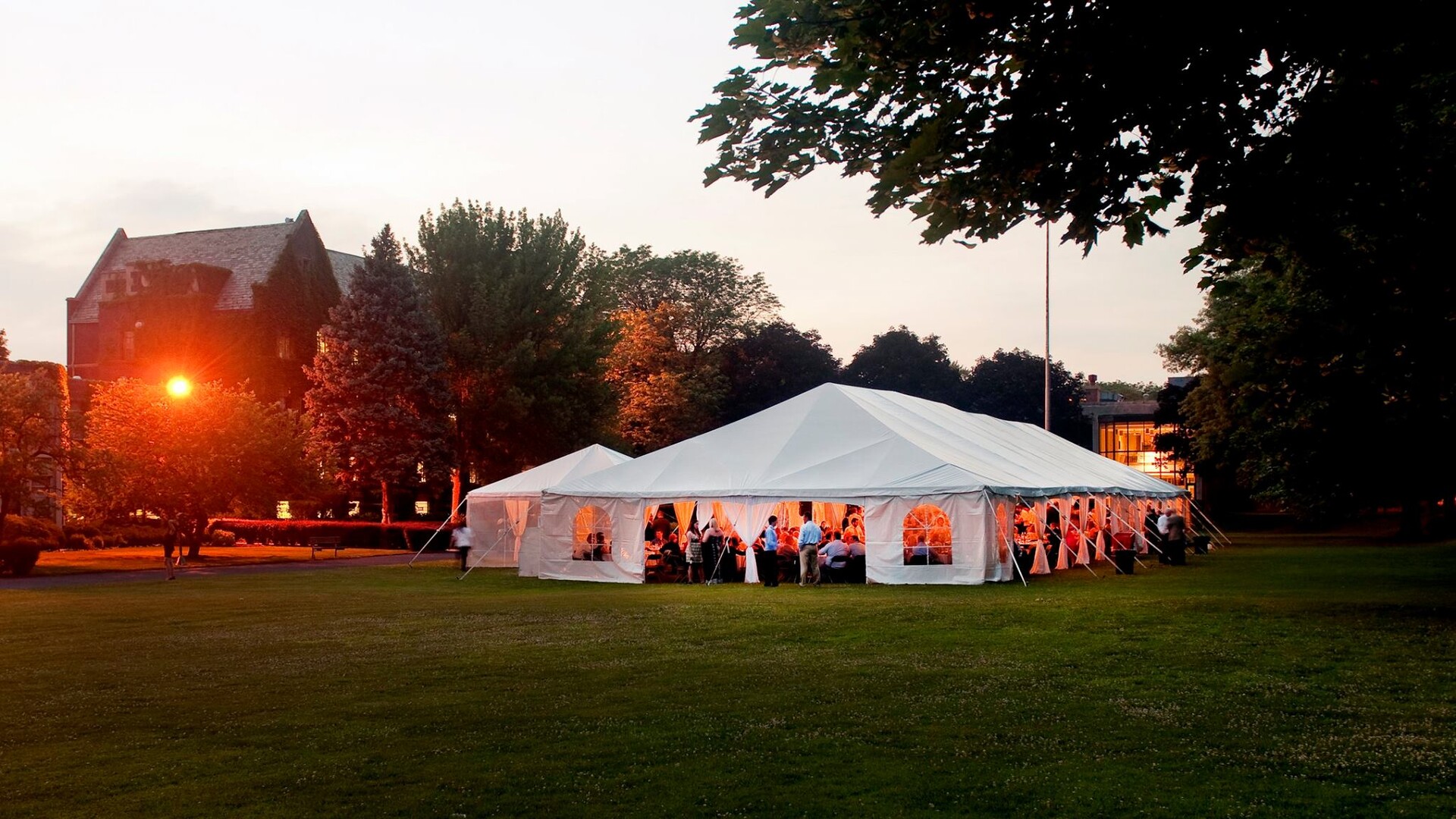 Our theater sits prominently at the head of our 20-acre campus. Nestled behind the theater is our expansive green space, Jones Bowl. This versatile space is ideal for large community events and weddings. Jones Bowl is bordered by four historic buildings, which provide a grand and private backdrop giving your outdoor event stately views in all directions.