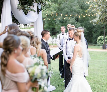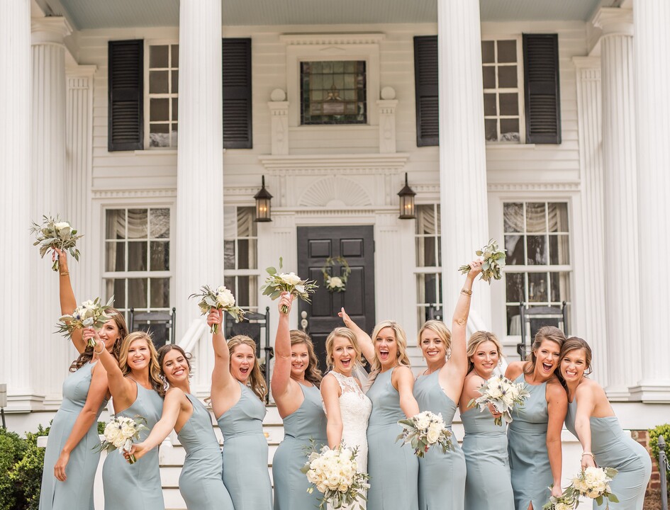 Because the home and grounds were ours for the entire day, it made it easy for my husband and I to take photos with both the groomsmen and the bridesmaids before heading to the church for our ceremony. The historic home and grounds made our photos look timeless and effortlessly picturesque. The entire establishment had a classy and classic canvas that allowed us to build on it and layer our own decorative style and floral arrangements. The permanent details, such as the strung twinkle lights, the tables set up outside for pre-dinner cocktails, and the intimate but nicely-sized ballroom-style dining area that poured directly into a white tent for overflow were great additions. How I wish I could relive that day again.... It was perfect! Thank you Sunny!