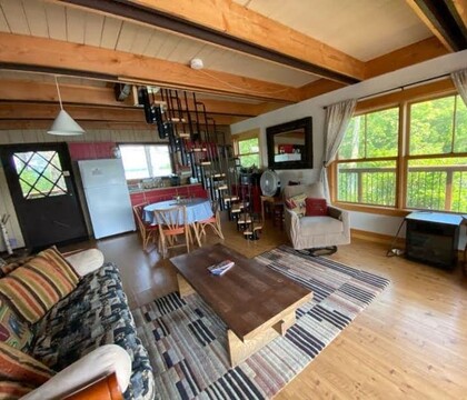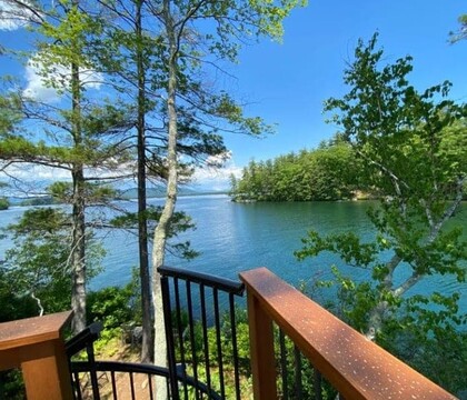 ed(I believe) bed with electric fire place. The second room also has a queen(I believe) sized bed with an electric fireplace. The third bedroom had two full(I believe) size beds with an electric fireplace(wasn’t working when we arrived). The loft upstairs has a divider the side on the left has a day bed with trundle bed. The other side has two twin beds. Every room has a heater/ac unit. The kitchen is fully equipped with pots/pans and has a fridge, oven and stove. Trust me..Photos from their website does not do justice! We checked in and immediately fell in love with the place. The staff was always very friendly. Every night they came out and helped start the bon fire. The view from the North wing I personally feel is the best! If you are looking to get married if you can cut it the best would be the Main Lodge. Their common room has an amazing view and tons of space if you needed to do an indoor wedding. They have canoes, paddleboats, paddleboards, and I believe sailboats. Next time I’m in Meredith I will be sure to stay here again!