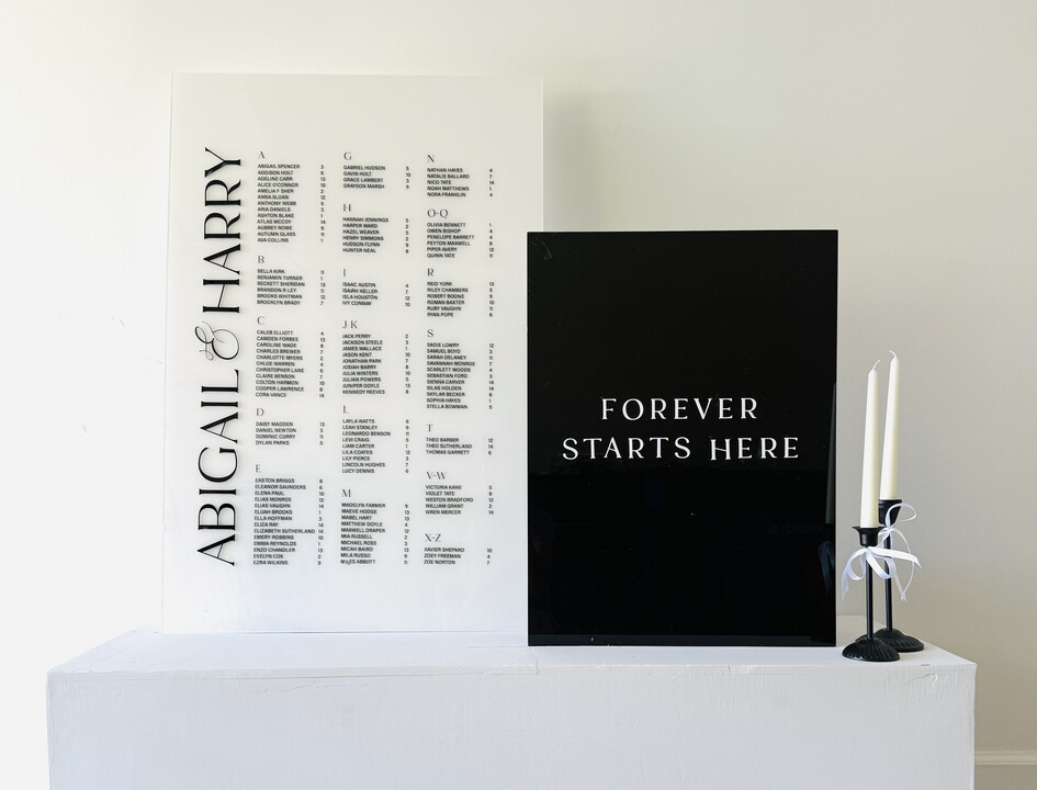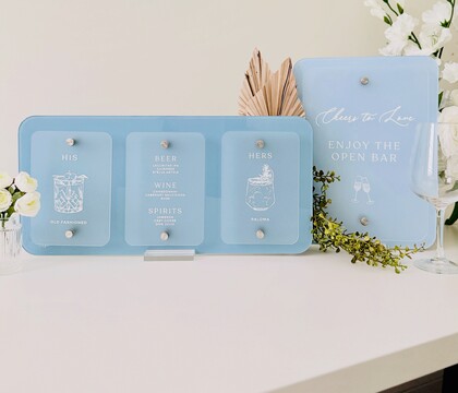 From elegant welcome signs to beautifully designed seating charts, table numbers, and guestbook displays, our creations are more than just decor—they're heartfelt expressions of your day's theme and personality. Whether you're planning a grand celebration or an intimate gathering, we collaborate closely with you to ensure every detail aligns perfectly with your vision.