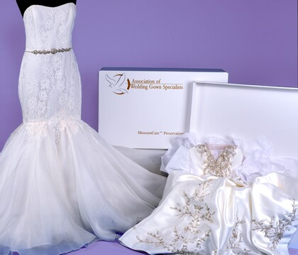 Only a MuseumCare™ wedding gown preservation is true protection for your wedding or family gown and for you. Look for the Association of Wedding Gown Specialists name, and look for their logo!