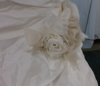 In 1985 I brought my mother’s beautiful wedding dress to Orange Labs. My grandmother sewed it in 1955, made of tiered layers of very delicate organdy, with appliqué and lace. Orang...