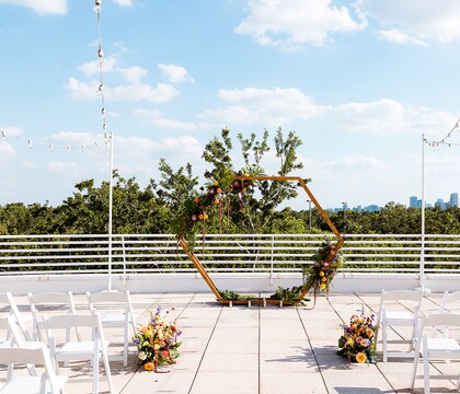 5 months prior to their wedding the couple were informed that terrace wedding start times were being moved from 6 to 5pm and ending at 10pm due to sound issues and the surrounding area, mind you the wedding invitations had already been printed, the happy couple agreed to the change because their vision had been an urban roof top vibe and the Museum agreed to reimburse them for the cost of reprinting the invitations.