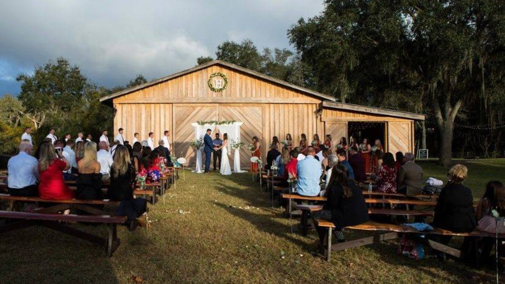 We are a budget-friendly family owned and operated wedding venue. Our venue is outdoors with a partially open barn and rolling pastures. We offer two ceremony sites, 3 arch options, and 2 dance floor options.