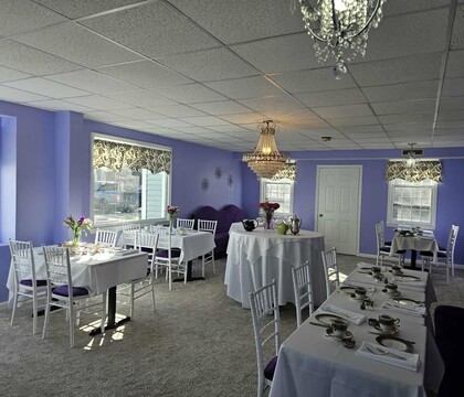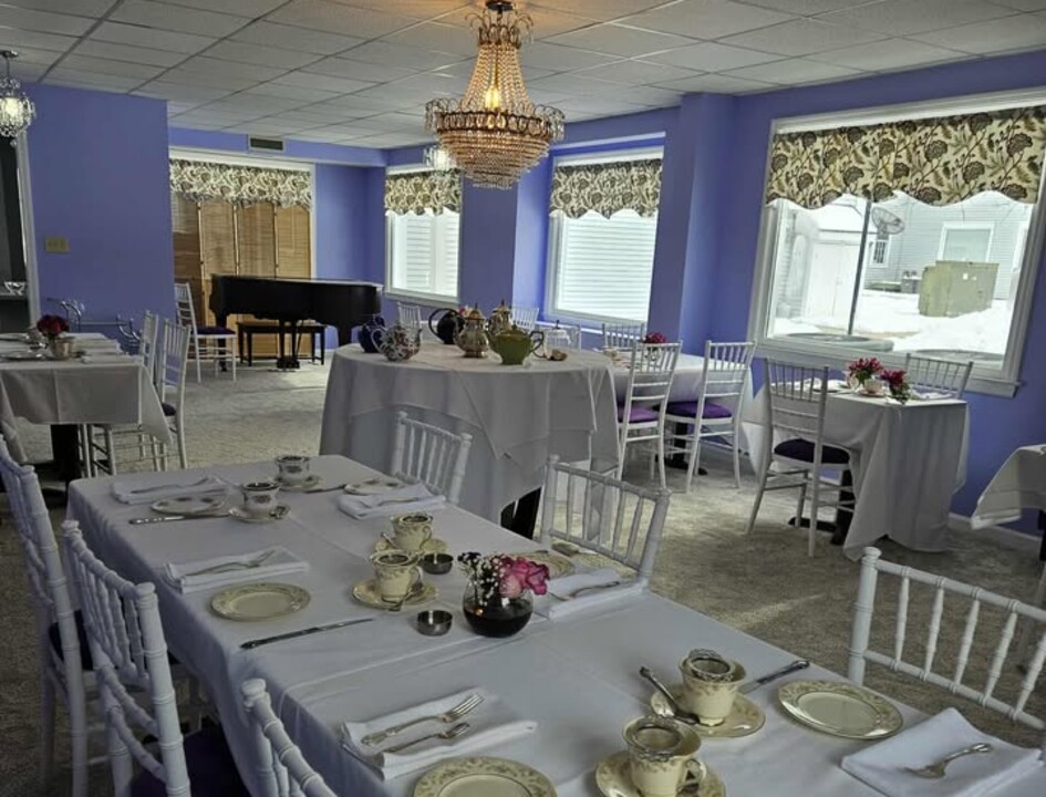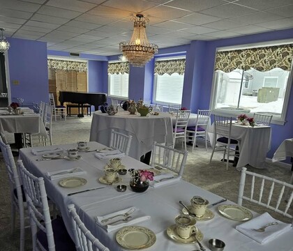 Celebrate love with elegance at Posh Tea Room in Monroe, CT, a gorgeous rehearsal dinner space for your upcoming wedding festivity. It's the premier destination for elegant wedding showers, sophisticated luncheons, and unforgettable bachelorette celebrations. Our beautifully appointed formal tea room, featuring a baby grand piano and sparkling chandeliers, offers a luxurious blend of timeless elegance and refinement. For those seeking a more personalized touch, our customizable event room serves as a versatile blank canvas ready to reflect your unique vision.