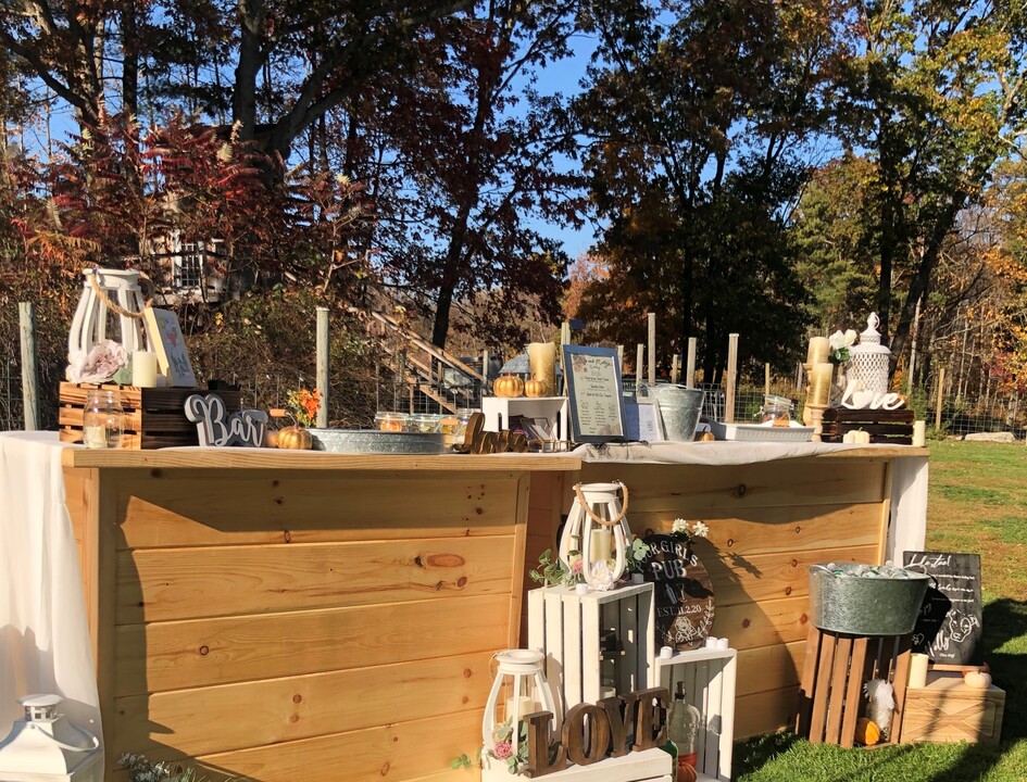 ramel rims to elaborate garnishes you really made each drink look and taste incredible. We were also impressed that your attention to detail didn’t just stop at the drinks either… thank you for setting up such a beautifully decorated bar!! You really turned such a big, unattractive space into something magical. (We got married in early October on a farm so I didn’t put too much thought into decorating the pavilion because I figured everyone would be outside enjoying the last bit of warmish weather & views…but the weather did not allow that to be the case ….so, really, thank you for making the inside so gorgeous). The bar was absolutely stunning. Thank you again and we can’t wait to book you for our next event!
