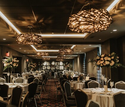 The modern interiors of Roost's event space are beautifully complemented by rustic accents, creating a uniquely beautiful space that can host up to 200 people. Wall-to-wall windows, romantic lighting, and chic hardwood floors come together to create a blank canvas within the banquet hall to be tailored to suit the occasion. With over 6,000 square feet, the on-site wedding planners can work closely with nearlyweds to design the reception of dreams. These talented specialists can assist with everything from vendor selection to the finer details of the chosen menu from the in-house catering and bar. The hotel banquet department is also on hand to ensure the occasion runs smoothly and professionally. Guests from near and far can avail themselves of the on-site hotel blocks for their convenience, ensuring every attendee can enjoy the festivities to the fullest.