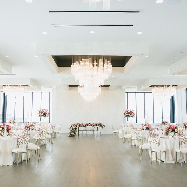 Sky on Nine is a wedding and event venue in Rosemont, IL. This stunning property is situated on the 9th floor of a beautiful highrise, offering sweeping views of the breathtaking Chicagoland area. The full renovation was completed in June 2023, offering a city chic setting for modern couples.