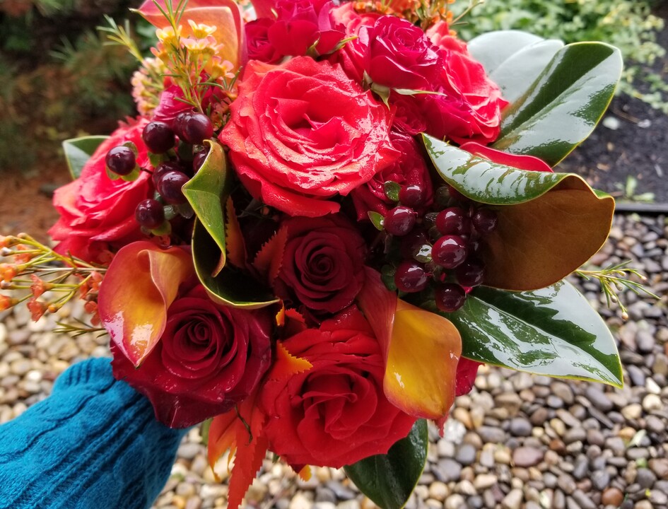 hand - I brought inspiration pictures and she really listened to what I wanted. She thought of all the little details, even writing down my height and dress type to make sure that my cascade bouquet was just the right size. I was blown away when my wedding bouquet was delivered and when I saw our reception flowers - everything was even better than I had imagined! There were a few changes we had to make to our order and delivery locations a few weeks before the wedding, which they were easily able to accommodate. Her prices were also really reasonable for the high quality you get.